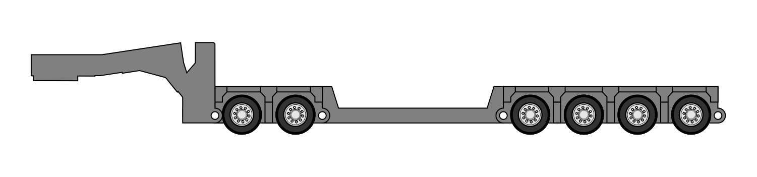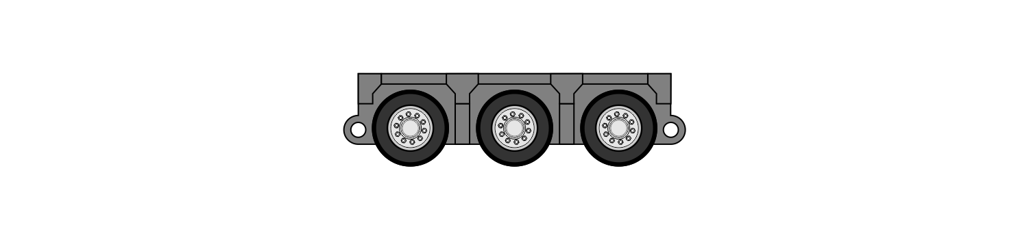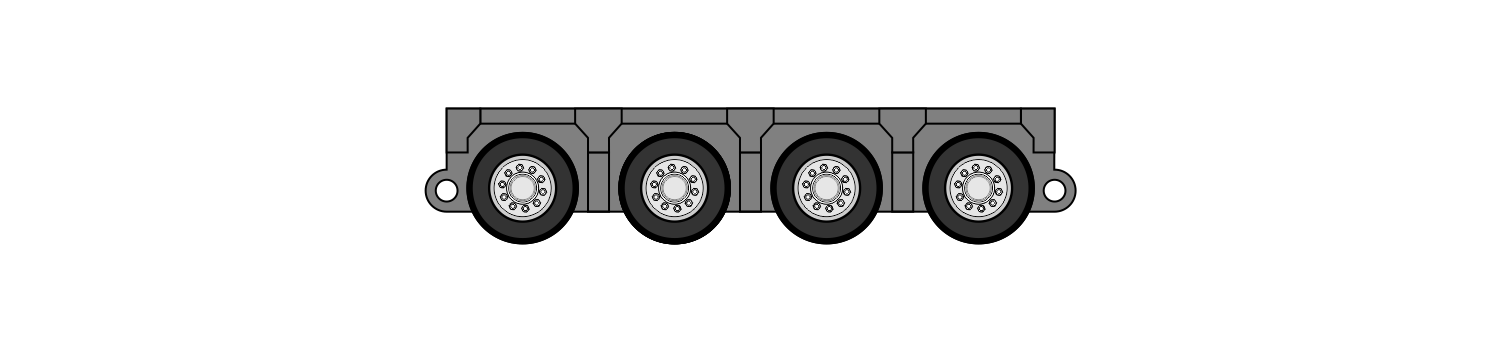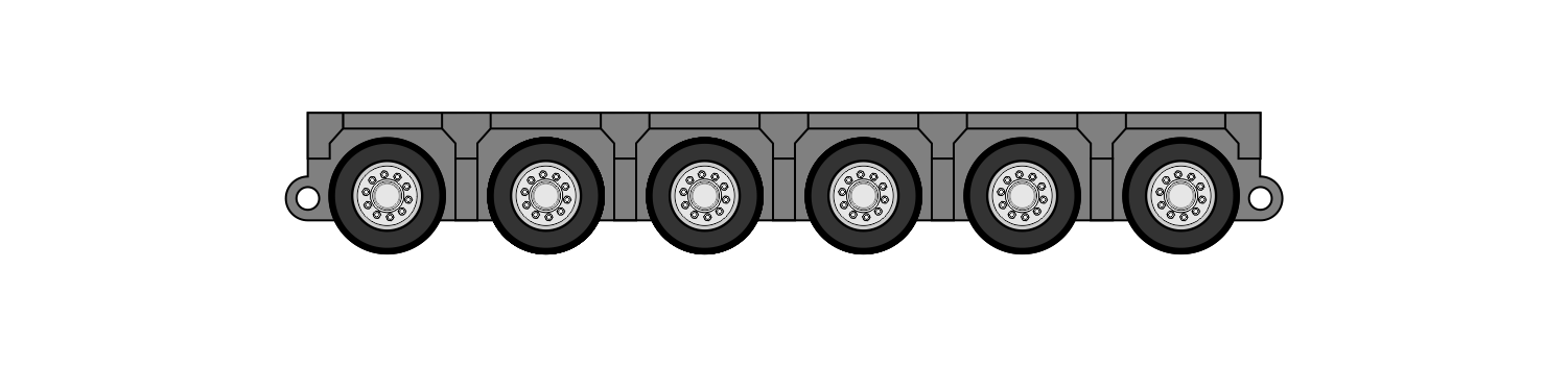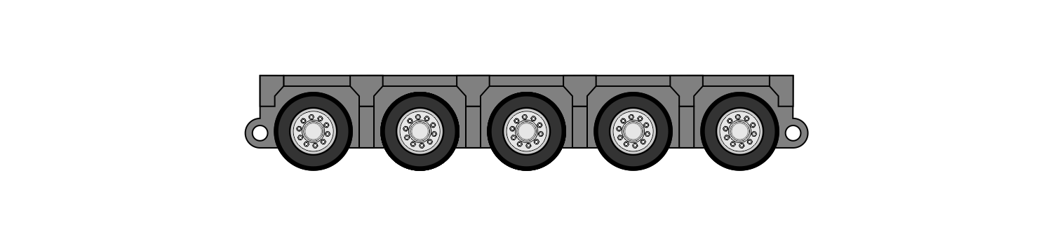 Los módulos vienen de 3,4,5 y 6 lineas, donde cada linea esta formada por 2 ejes de 4 neumáticos cada uno. Estas unidades se acoplan entre sí para transportar distinto tipos de cargas, además las misma tienen integrado el sistema de dirección.